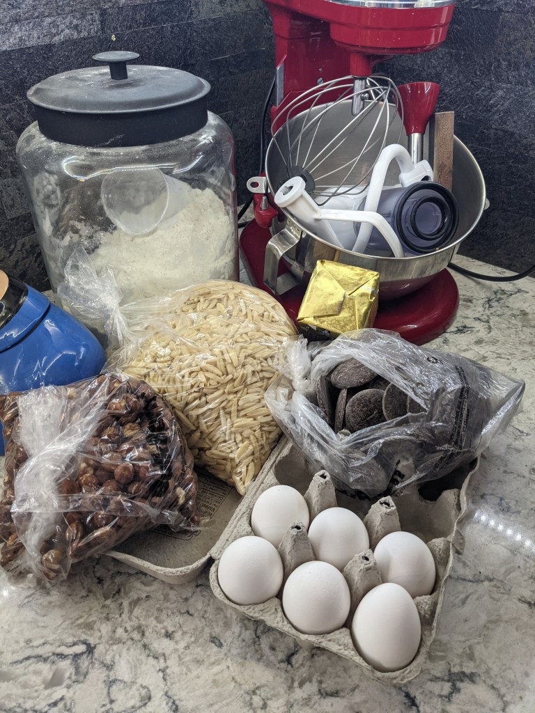 Marjolaine is a French Dessert (cake?) made of layered Dacquoise, Ganache, and French Buttercream. This was the technical challenge in the Season 3 finale of GCBS, because apparently I am a glutton for punishment. I didn’t intend to start this project with a season finale (ie. presumably among the most difficult) bake from the show. I did so accidentally as I was mostly choosing based on what was already available in the pantry (aka “I am a cheapskate”).