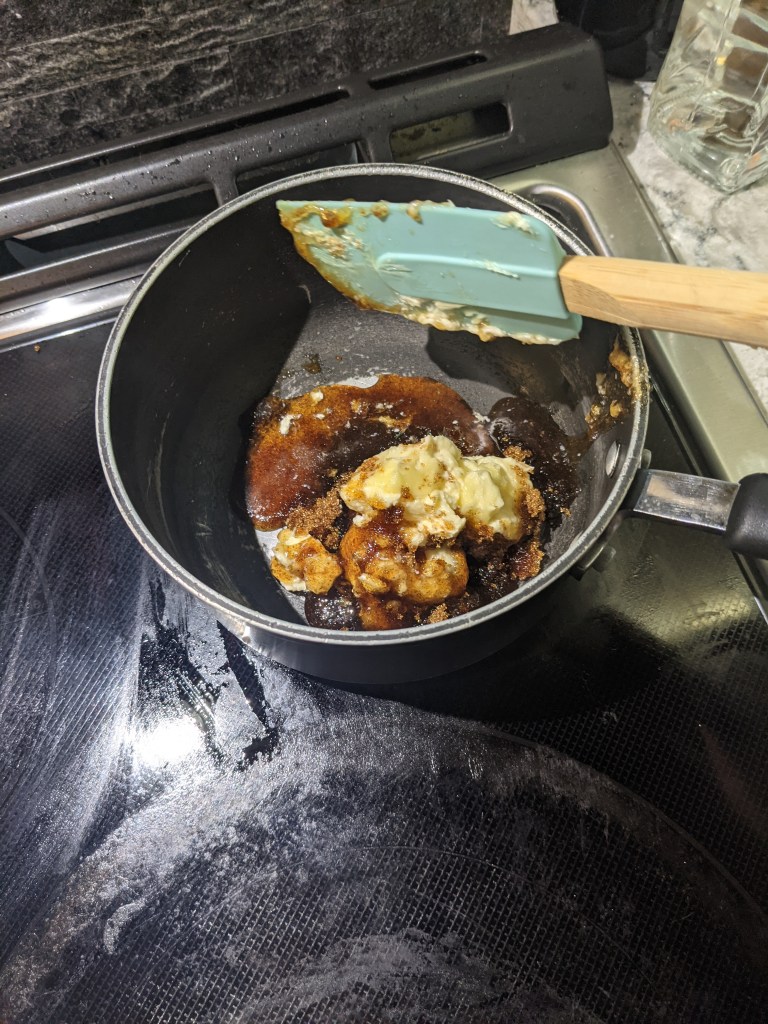 As I mentioned, the lace cookies which become the brandy snap shells are more similar to candy than they are to cookies. Corn syrup, demarara sugar, and butter are gently heated until the sugar is dissolved. If this was a candy recipe, this mixture would be further heated to 240F+ and candy would ensue. The batter does get heated to candy temp in the oven, but first a small amount of flour is added once the sugar is fully dissolved. This creates enough structural integrity that the hot sugar can be manipulated and hold without being an unmanageable temperature and they will cool more slowly so the baker has time to work them into shape. The flour also creates a barrier between the sugar and the filling so the shells don’t dissolve instantly (although they are still extremely fragile and have very little shelf life once filled, so if you are interested in making these, plan to fill them immediately before serving). Isn’t science grand!