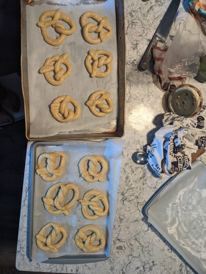 So there you have it. Is it possible the CBC is trolling all of us with this recipe? An unexpected plot twist on pretzel week? That would be extremely meta for the CBC, but this was also the season that was cast and produced during the pandemic. Maybe someone over there had a transcendental experience planning this episode and wanted to share it. We will probably never know. The important thing is: the pretzels, despite their inauspicious beginning in the crevices of my confusion, were so good Dave ate 7 of them and I had 3 before I hid the rest in the freezer.