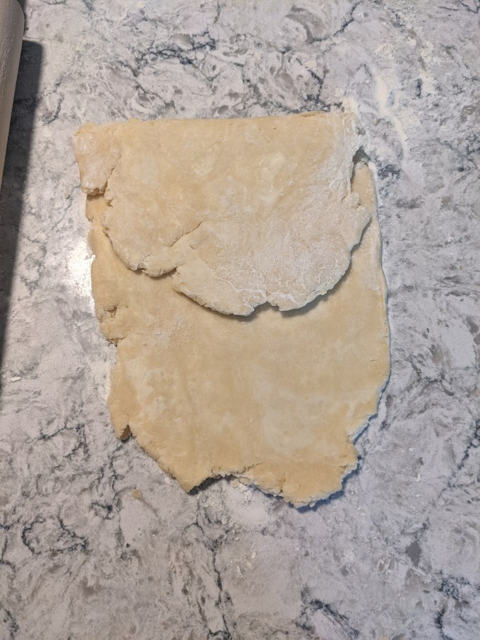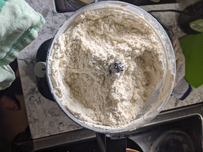 Allow me to offer some more useful commentary. The REAL fact to remember is: the key to good pastry is keeping everything as cold as possible until it’s time to go into the oven. The method outlined in this recipe is the same as the one used for the Pithivier, but it was about twice the volume. It was almost too large for my food processor, but I made it work. To review: butter, flour, and salt are blitzed to coarse crumbs. Ice water is added to bring everything together. The dough needs to be minimally handled at this stage to keep the temperature low which prevents the butter from incorporating into the dough. Once the water is introduced, it becomes even more important to minimize handling in order to keep the gluten development down. It is a delicate balance to try and bring the dough together without over working it – best managed by erring on the side of caution. Keep in mind: the roll outs themselves are working the dough further so it is always best to under work. You can’t un-ring a bell, and you can’t un-work a dough.