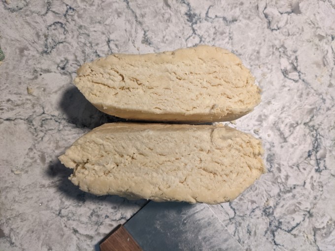 One thing I am finding consistently throughout this project is that I need more liquid to hydrate my doughs than what is called for in the recipe (I mentioned this when making Maple Leaf Sandwich Cookies and Pretzels). As much as I enjoy criticizing the CBC for providing inadequate recipes, different levels of hydration needed for different flours is A Thing That HappensTM. Flour, as we know but maybe don’t consider, is a milled grain. As with any plant, flour is susceptible to variation in growth conditions, genetics, climate, region, and manufacturing. This is why baking requires a bit of intuition on top of all that science. The baker is only as good as their flour and we need to know how our dough is meant to feel in order to create the same result over and over again. It’s a tactile knowledge gleaned from practice, patience, and experience. I get all of my flour from the Bulk Barn. If they have unbleached Five Roses, I use that, but otherwise it is just generic Bulk Barn unbleached white flour. Robin Hood is the official flour of GCBS, so I am not particularly surprised that this is coming up repeatedly as I work through this project. Something to keep in mind as we go along.