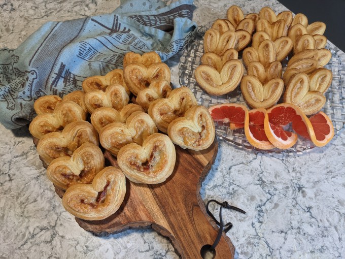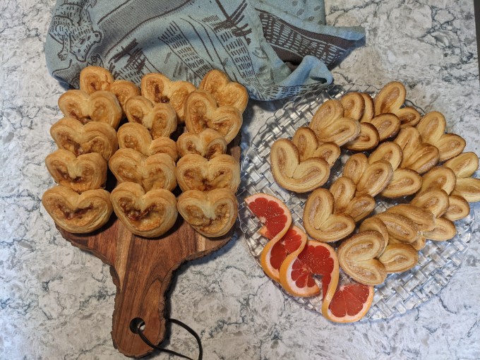 This bake is the last laminated dough I have to do for this project and I have come to an unexpected conclusion: rough puff is a surprisingly speedy bake if you know how to do it. I would easily choose Palmiers as a quick bake to do for a social event or fundraiser; they’re just a little pricey because apparently the French are unconcerned about arterial health the amount of butter needed is staggering. (Fun fact: I calculated it to be about 11g of butter per serving in this recipe, which is over 2 teaspoons). With that in mind, I suggest going for a high-end butter (like Lactancia or Kerrygold) when making puff pastry for a crowd (which I most certainly did not do here. I have been buying as much butter as I can when it is on sale for this project and I do not have the luxury of getting fussy about brands).