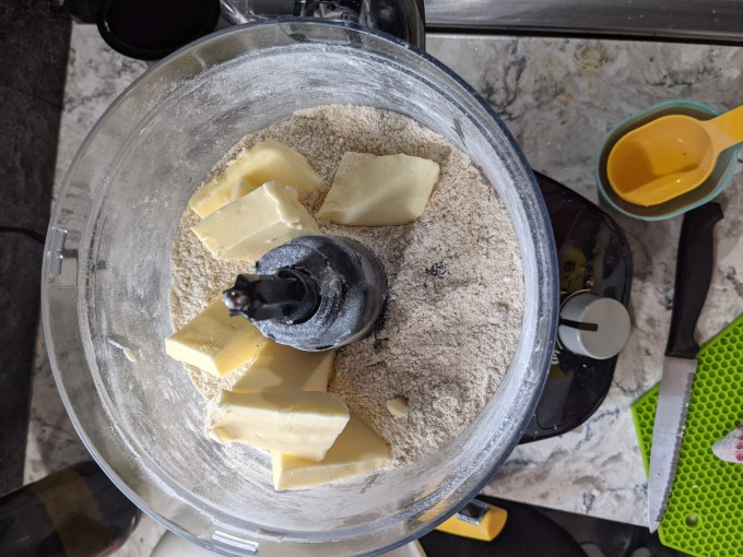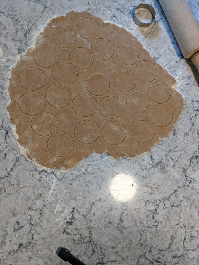 The base of the puffs is a simple digestive cookie. The recipe called for graham flour, which I could not find anywhere, not even online. I did some research, and learned graham flour is just a coarser version of whole wheat flour. It is possible to make a reasonable facsimile of graham by adding bran and wheat germ to AP whole wheat flour. I decided to make use of what I had on hand, so I did some Flour ScienceTM. The only type of whole wheat flour I had in the pantry is bread flour, which is high in gluten. So of the required graham flour called for in the recipe, I used ¾ whole wheat bread flour and ¼ white cake flour. Cake flour is low in gluten so by combining the two together, the final concentration of gluten in the flour should come out as something close to what we would see in a whole wheat AP flour. #SCIENCE, AMIRITE!?