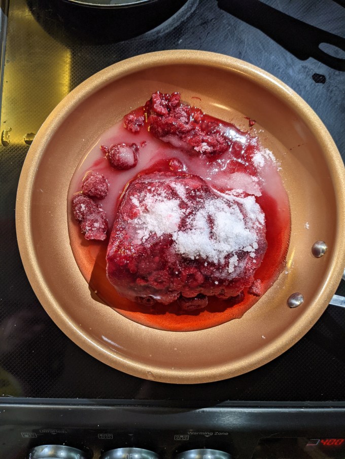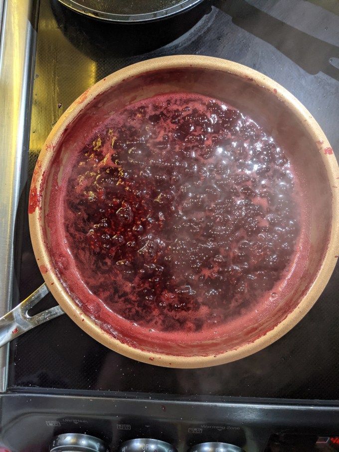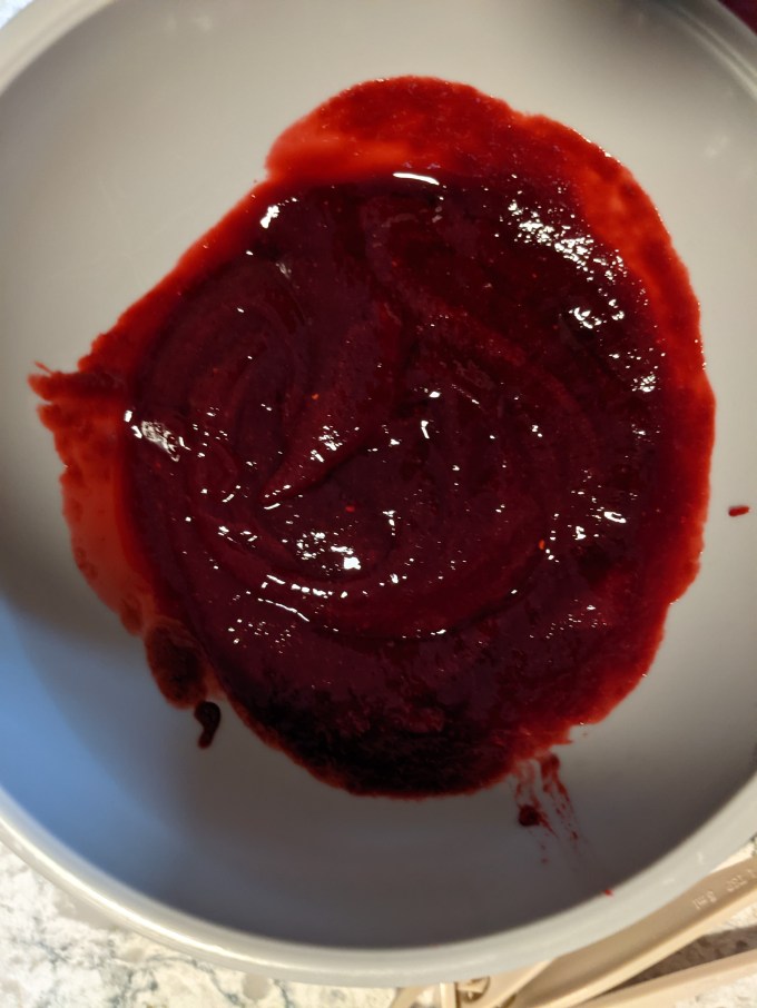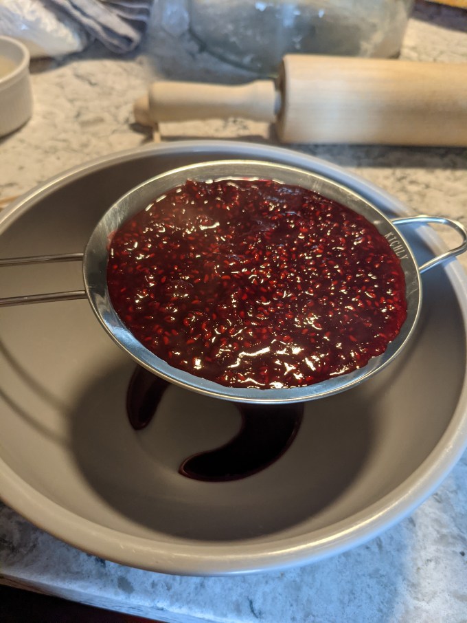 Once again we have raspberry jam which was also featured in the Pithivier, the Marshmallow Puffs, and the Swedish Princess Cake. This version did not feature jam sugar (pectin) but was a simpler variation using just fruit and sugar boiled down to a nice paste. The seeds are strained out and that is all there is to that.