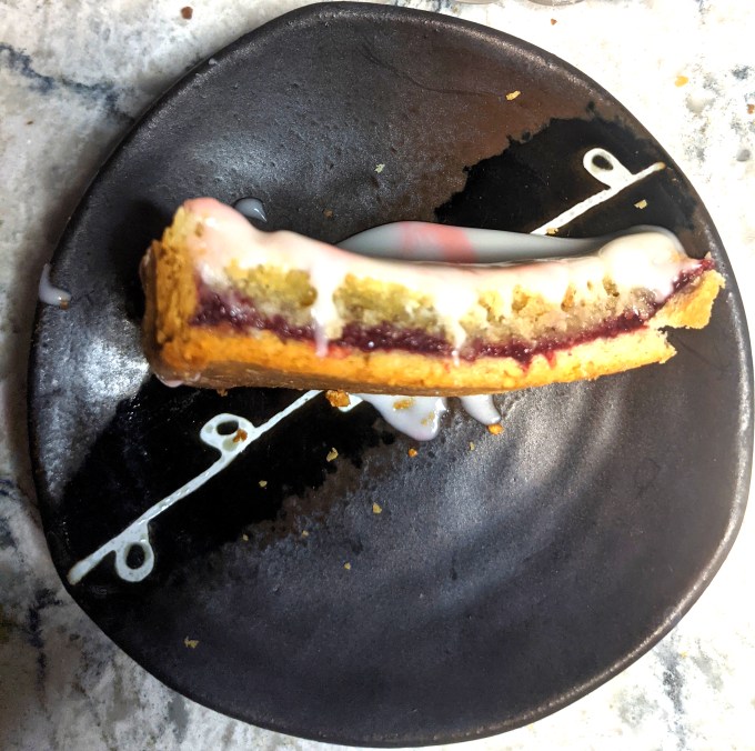 The final result of this tart was about what I expected. The frangipane and jam filling is a killer combination and the sable pastry is a nice quick short crust to have handy. The glaze added nothing to the final eating experience for me. I think it’s fair to say I don’t really like icing at all so there was no way a half inch layer of icing sugar glaze was ever going to be something I am getting excited about.