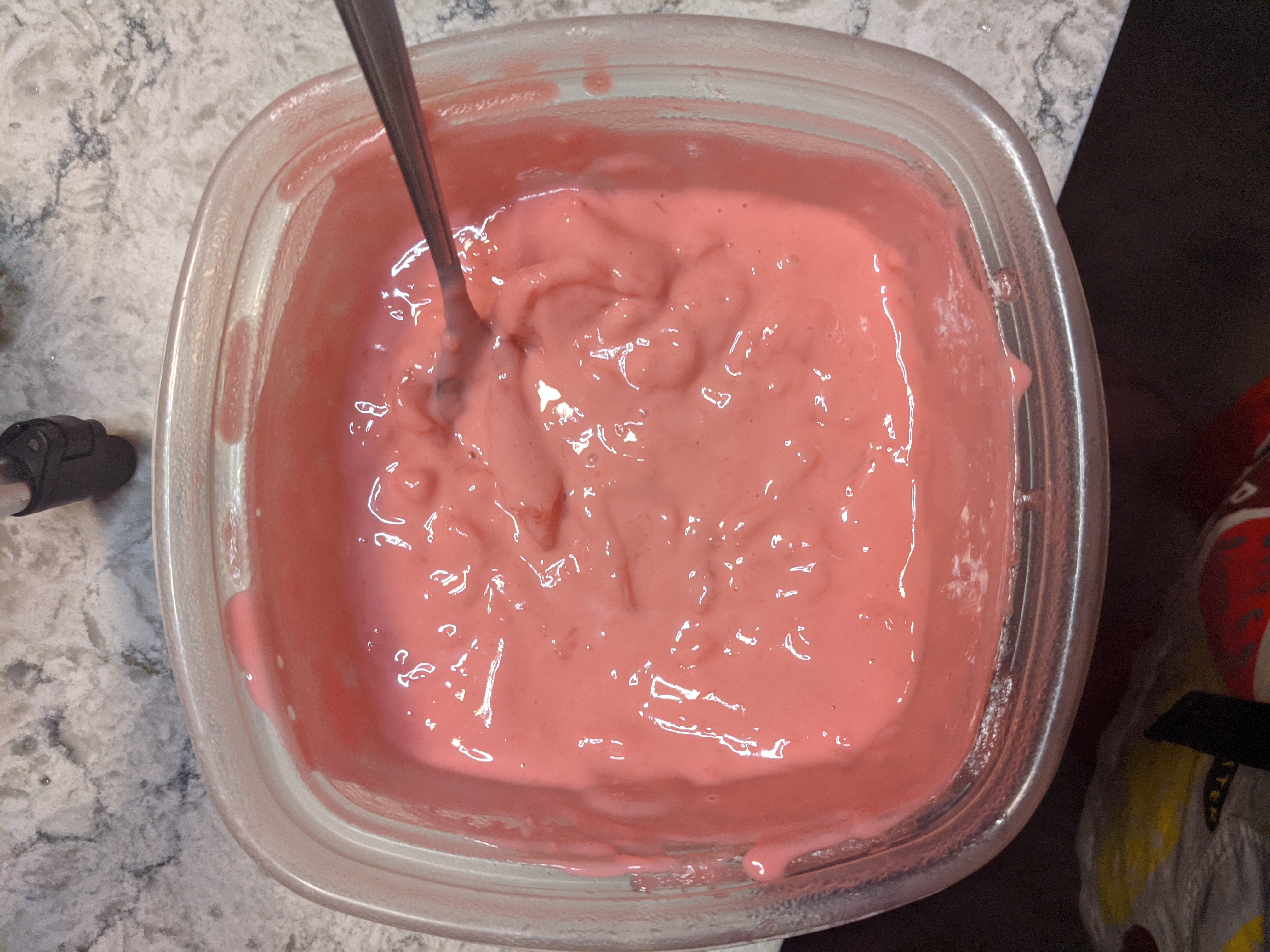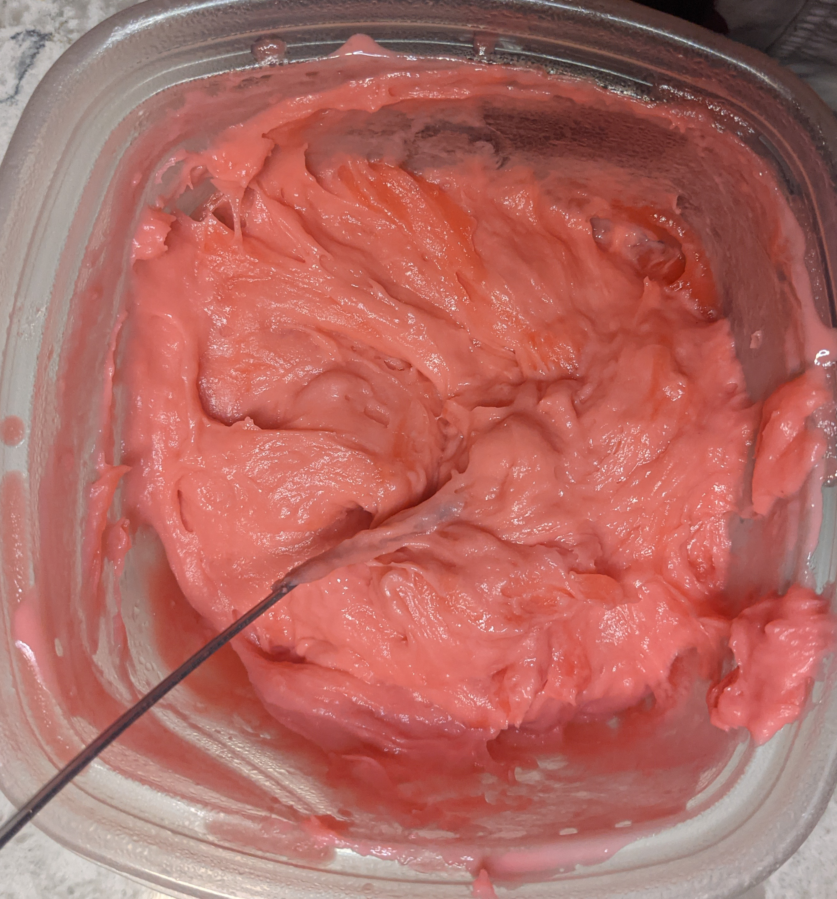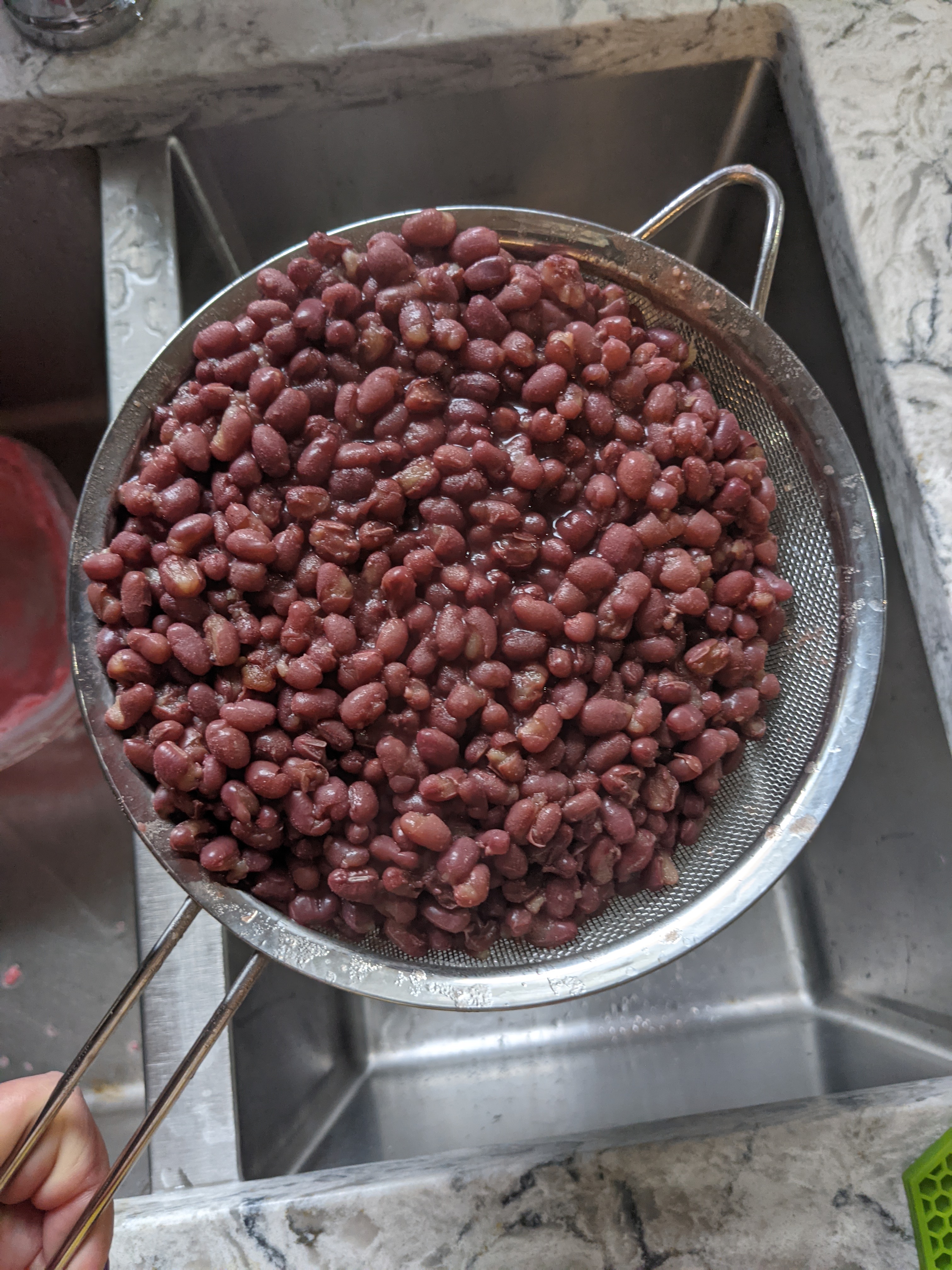 The other problem I had is the instructions didn’t lend a lot of insight about the consistency or texture of the bean paste. The judges made some comments about some of the bean paste being too gritty. I did a little research and found there were different types of bean paste with varying consistencies, so I tried to make mine completely smooth. The instructions seemed to be saying to just sieve the beans to process them. I tried that first but found the final product was way too liquid to be shaped. So I added the solids back into the strained stuff and blended with the immersion blender. I think I also just had a too much liquid left in the beans before I processed them so the final paste was a little too soft to really sculpt around a strawberry.