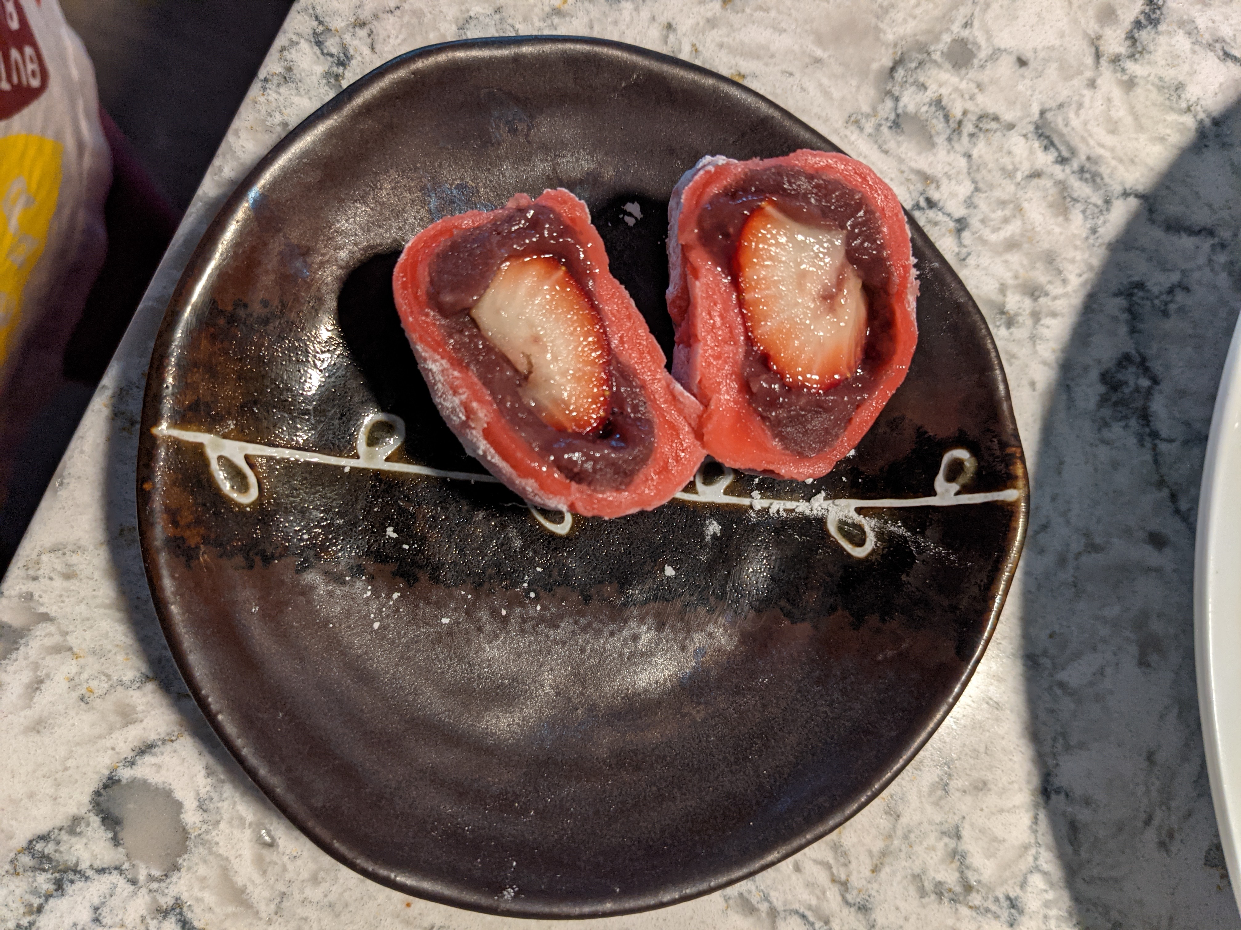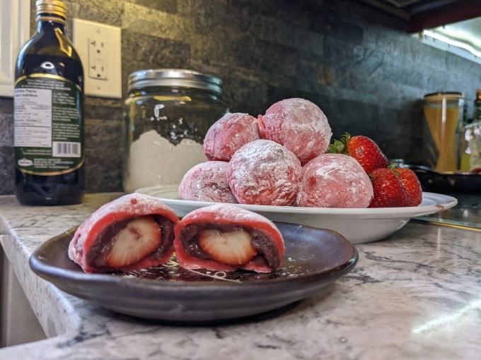 The final presentation of these was ok but not great. I had difficulty getting the mochi dough a consistent thickness all the way around. It was thin on the top and thick on the bottom. I am sure I would improve at this with practice but I don’t know if I would make these again. They are a little bit of a niche snack and they don’t keep for long. If you can’t serve them all at once to a group of people who will eat them, they aren’t really worth the effort. I will say the strawberry was a tastier addition than I expected and worked well with the bean paste. I might give these one more go next year with better strawberries just for the sake of redeeming myself. We shall see what the future holds.