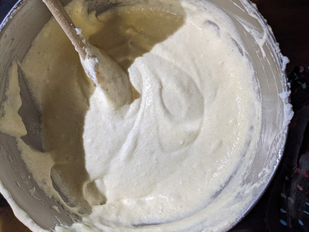 This was a slight variation on jaconde and I didn’t hate it. Egg whites are whisked to soft peaks, sugar is gradually added, and the meringue is whipped till glossy and holding stiff peaks.