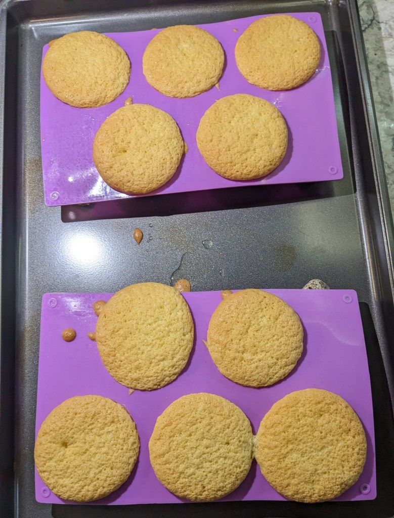 The cake filling is piped into the cakes. Once again I found I didn’t get quite the fill volume I was going for and once again I found myself following the instructions call for a star tip and wondering why I wasn’t just using my fill tip: that is what it is for. Perhaps one day I will actually remember this while the bake is in process.
