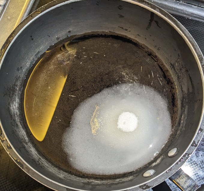 Next up is a very simple syrup. Water, sugar, and lemon zest are cooked on the stove until the sugar is dissolved. Limoncello is stirred in and the lemon zest is removed.