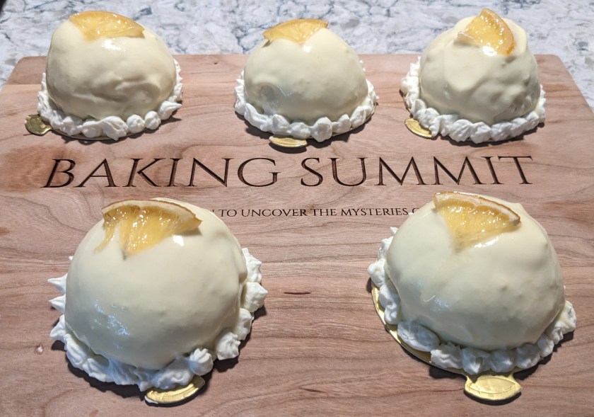 How I came to select this bake in particular is a fine example of my classic blend of mild confidence and lack of preparation. I had several lemons that were getting old and thought: hey, isn’t one of the GCBS bakes a lemon-based recipe? So I checked the ingredients, ordered the silicone moulds I needed, and decided to bake the following weekend. This was the extent of my preparation. I didn’t review the episode; I didn’t even realise it was a finale bake when I decided to do it. I also didn’t read the recipe before I started (do as I say and not as I do: ALWAYYYYSSSSS read the recipe before you start), so I really went into this gong show of a bake blind. All in all, mine turned out fine, but I really didn’t anticipate what a marathon this would be. I will likely make this again since the finished product is absolutely fantastic, but I would do it in two days instead of one. Next time I will make the lemon curd and pastry cream a day in advance and then bake the sponge and assemble on the day of serving.